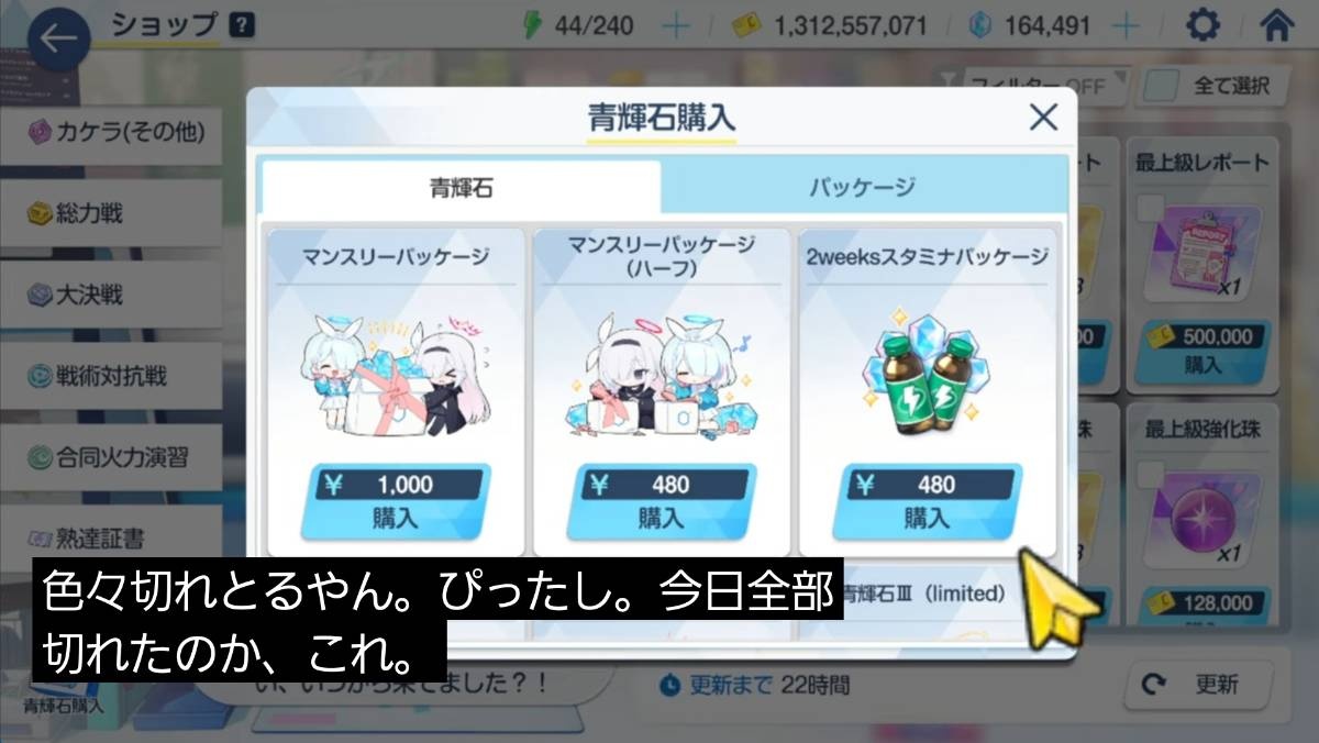 もしかして今日全部の課金切れたのかも…w(全部期限が違う課金パック)