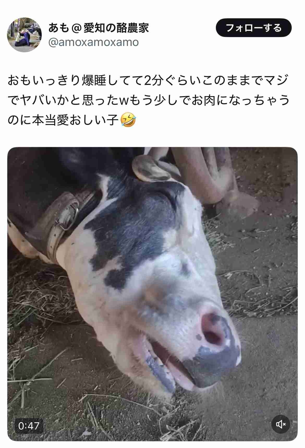 牛くん寝姿かわいいね❤�死ぬよ(悲しみ)