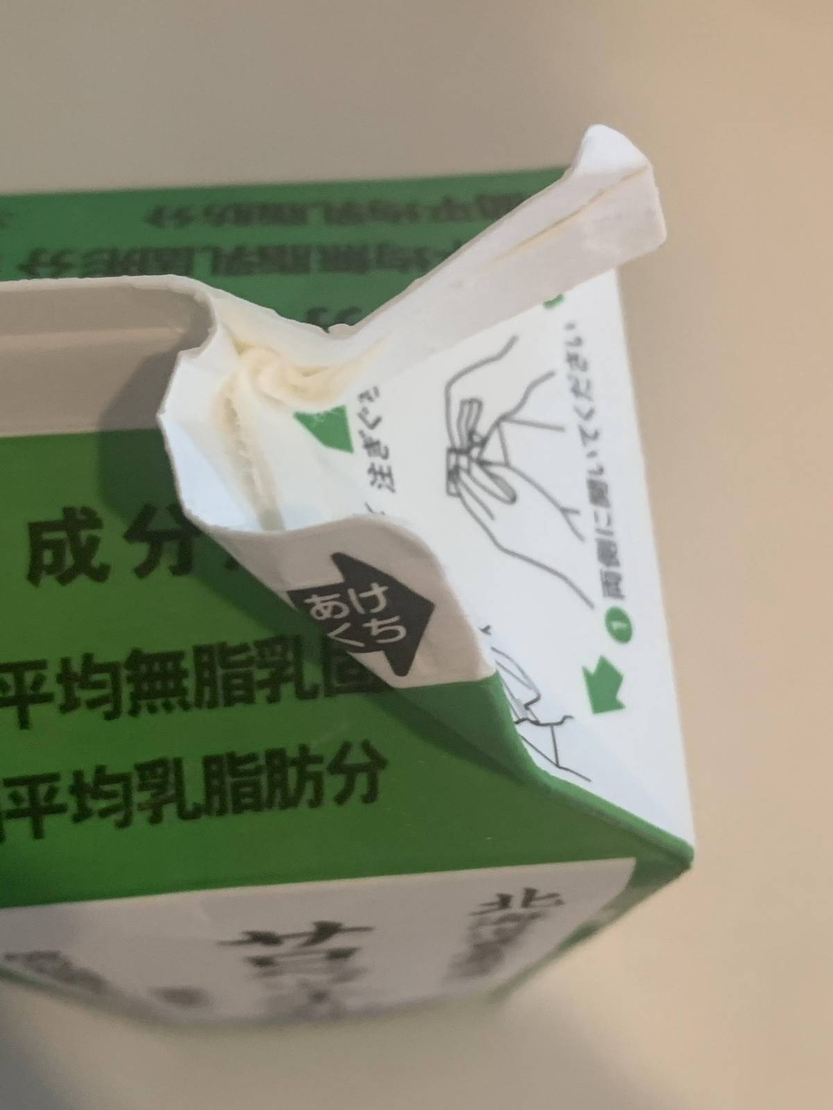 紙パックは注ぎ口だから開けるのはフタじゃなくてクチだよ