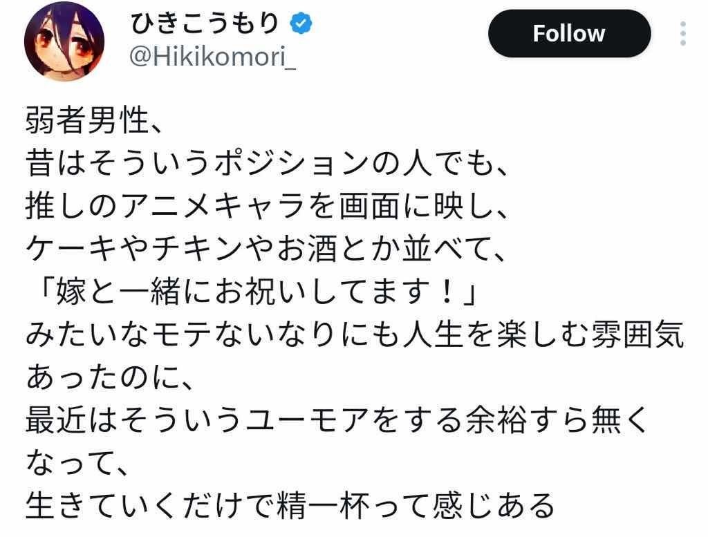 国全体余裕ねえしまして弱者男性はガチで余裕無いで
