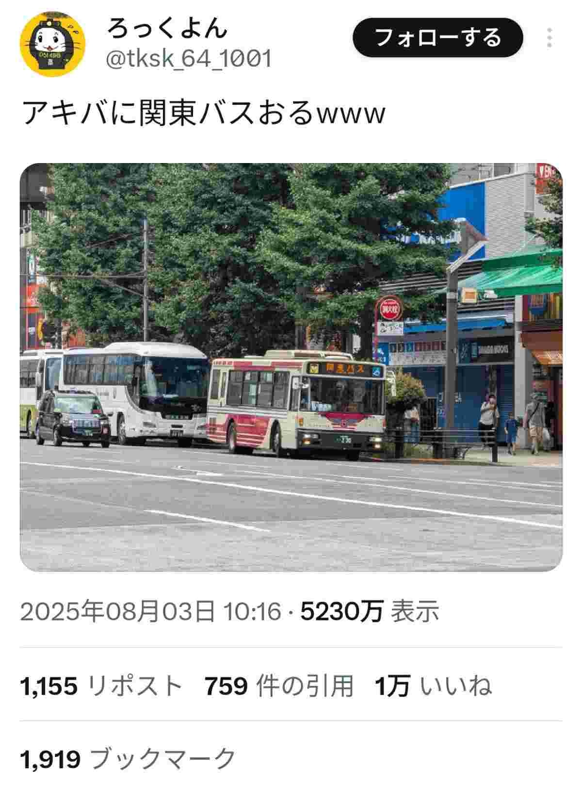 バスなんか興味ないから秋葉原に関東バスって普段はいないんやなって思って終わりやろ