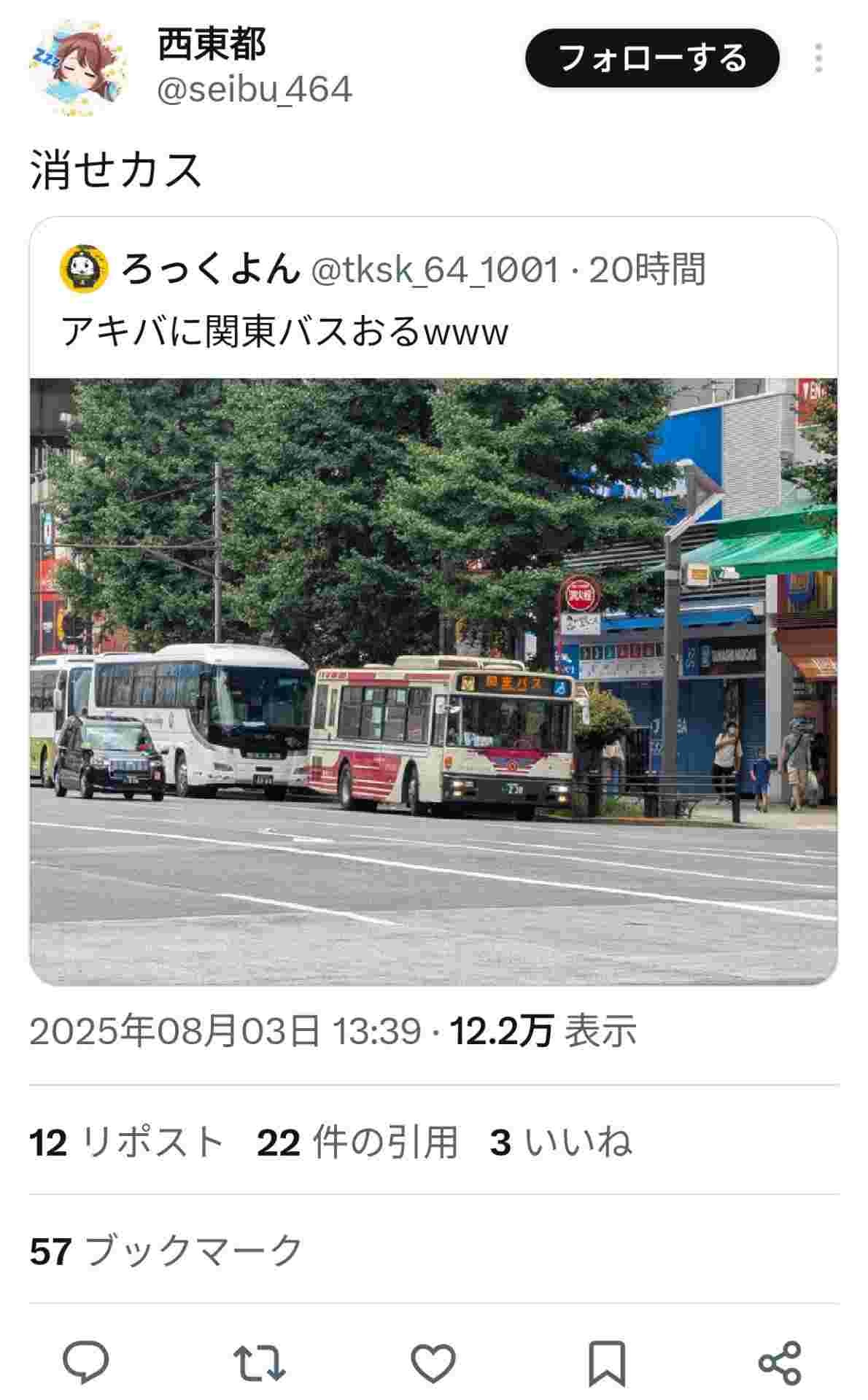 他のバスが他の場所走ってるのを撮影するだけで文句言われる世界とか意味わからんくて草