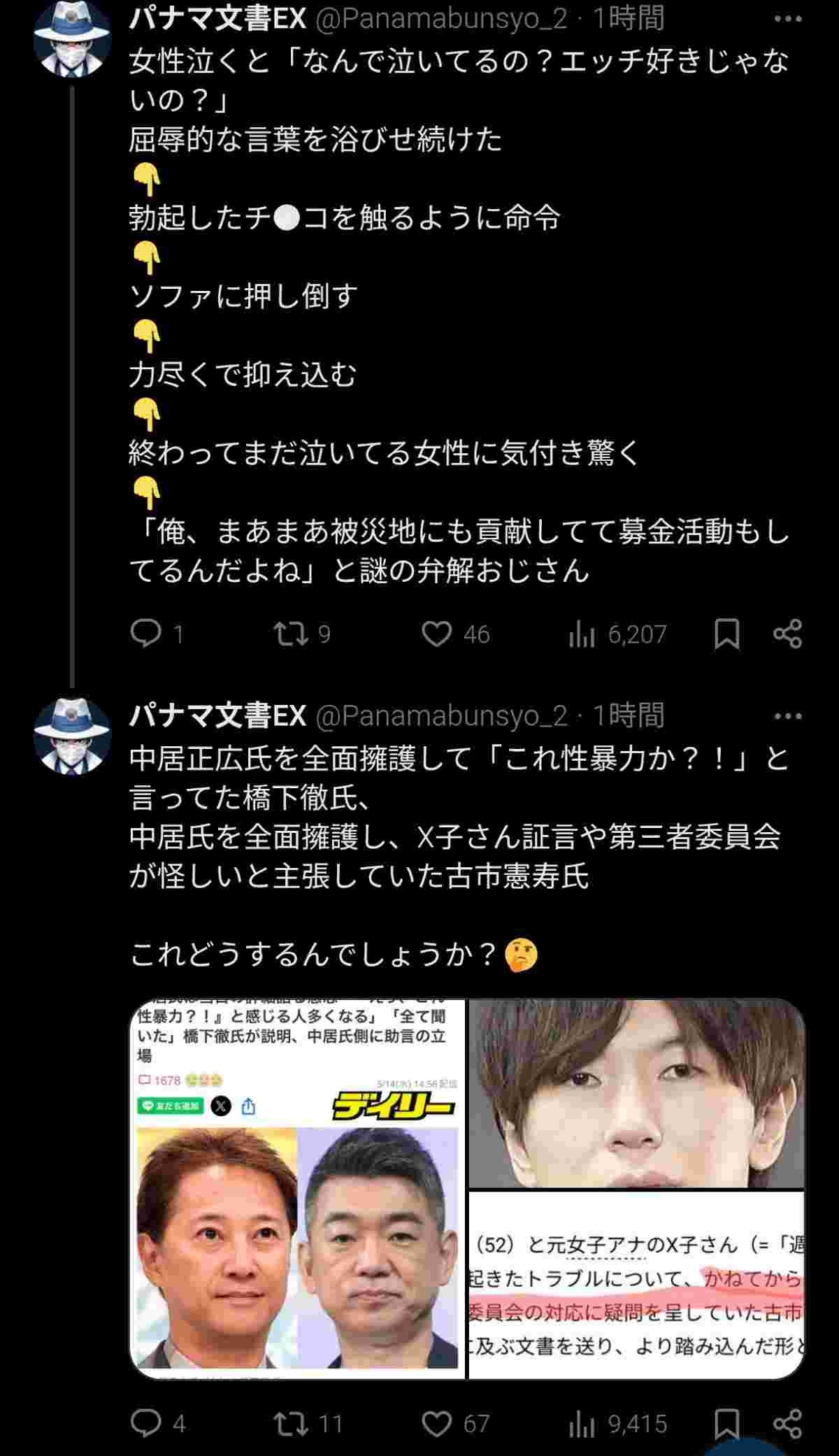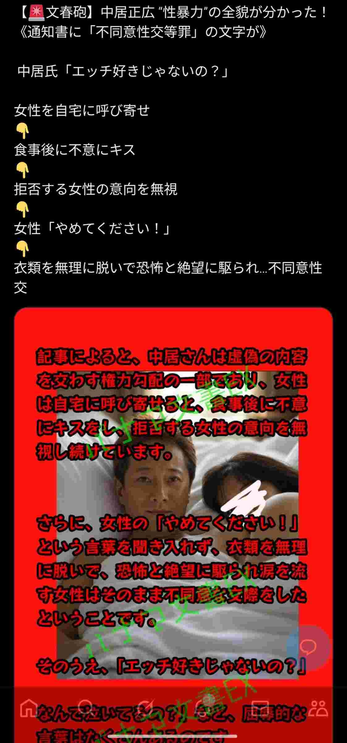 中居が被害者の言い分を認めて示談してるんだから不同意性行なのは確定しとる