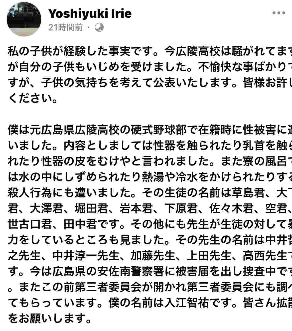 野球部だけやなくバスケバレーでも類似の告発でてるし広陵は最悪廃校あるで