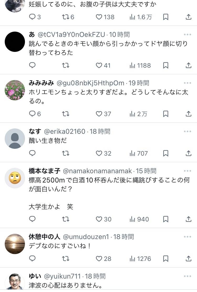 流石に縄跳び飛んだだけでこのリプ欄は可哀想やろw