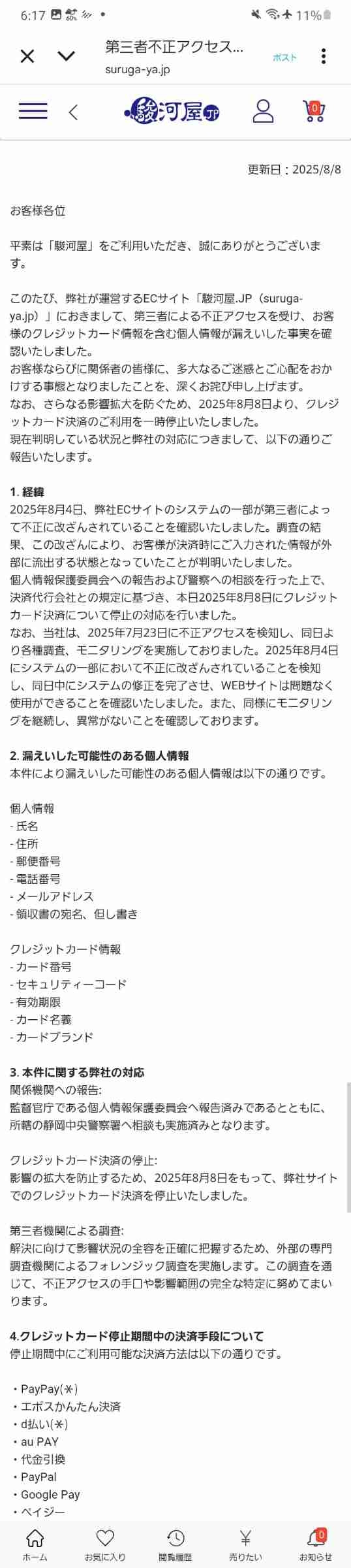 不正アクセスに気づいてから決済システムが書き換えられてるのに気づくのに2週間かかってて草