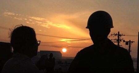 そういう戦闘服姿、迷彩服姿の向こうに、こんなきれいな朝日を見るのは、とても残念です。