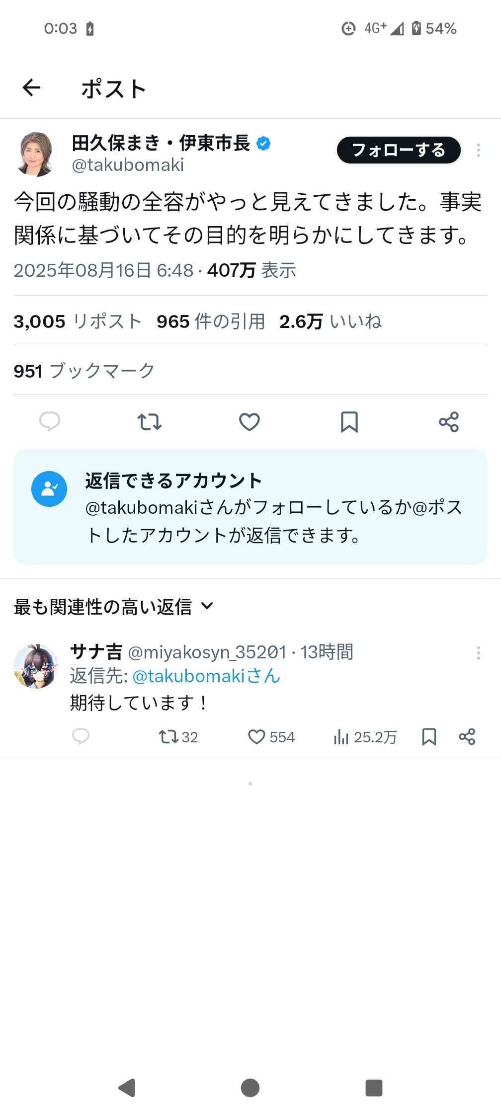 田久保真紀伊東市長「ようやく今回の騒動の全容が見えてきたわ⋯」
