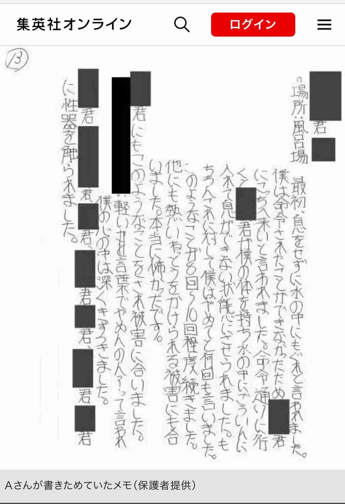被害に遭ったとされる時期はAさんが1年生の頃だ。Aさんは度重なるイジメに耐えかねて2年生になる前に退部、退寮して自宅から通学しているという。両親が経緯を証言してくれた。