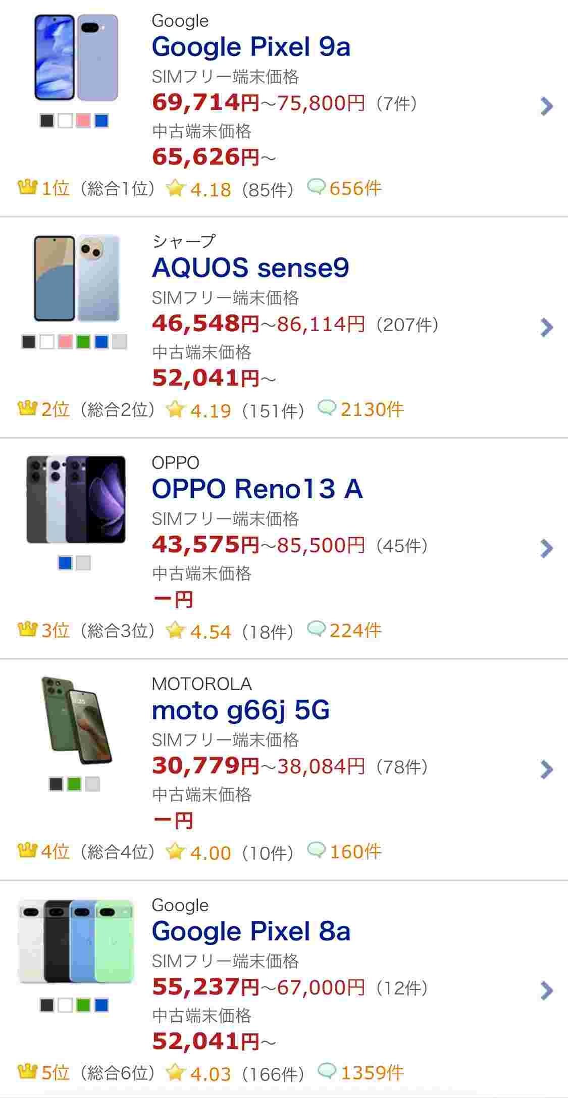 RenoAシリーズ値上げして微妙やわ