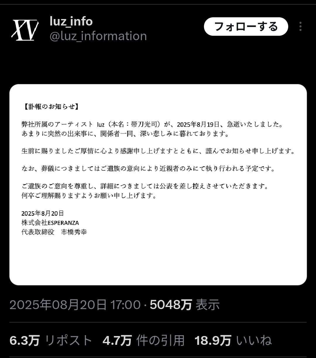 昔と違って自称芸能人みたいな人が増え過ぎて全然知らない人が亡くなるニュース増えたなあ