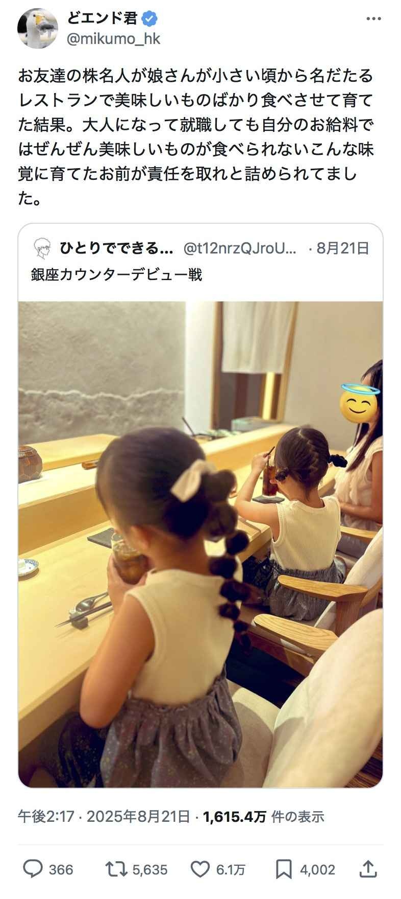 普通の子供なら金があっても高級店には連れていけんだろ