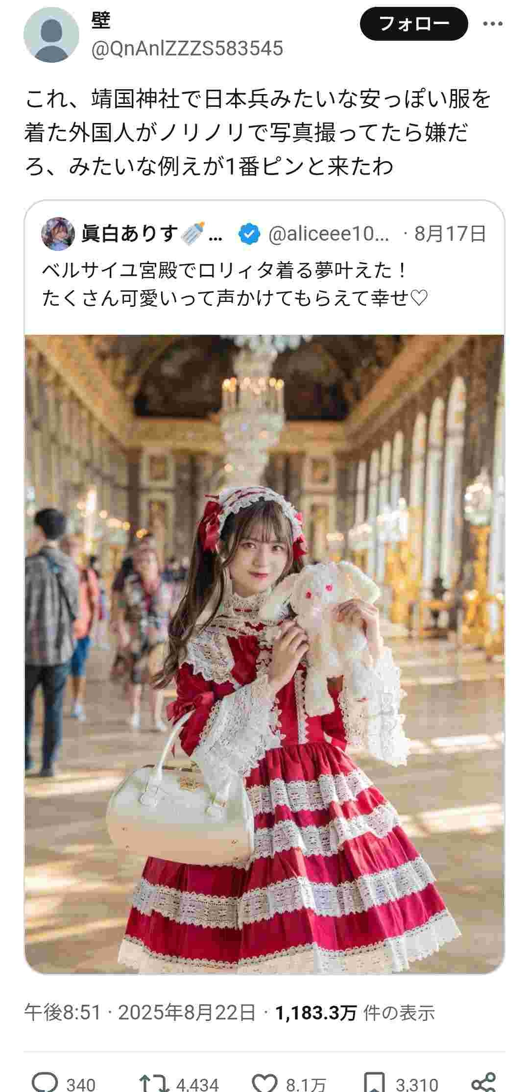 【画像】ベルサイユ宮殿でロリィタ服着た日本人、めっちゃ批判される