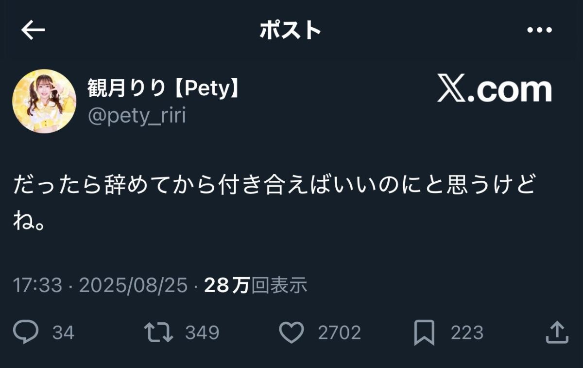 恋リアでカップル成立は当然アイドルなる前の話でむしろファンはそれ理解した上で推してるから関係無いのよ