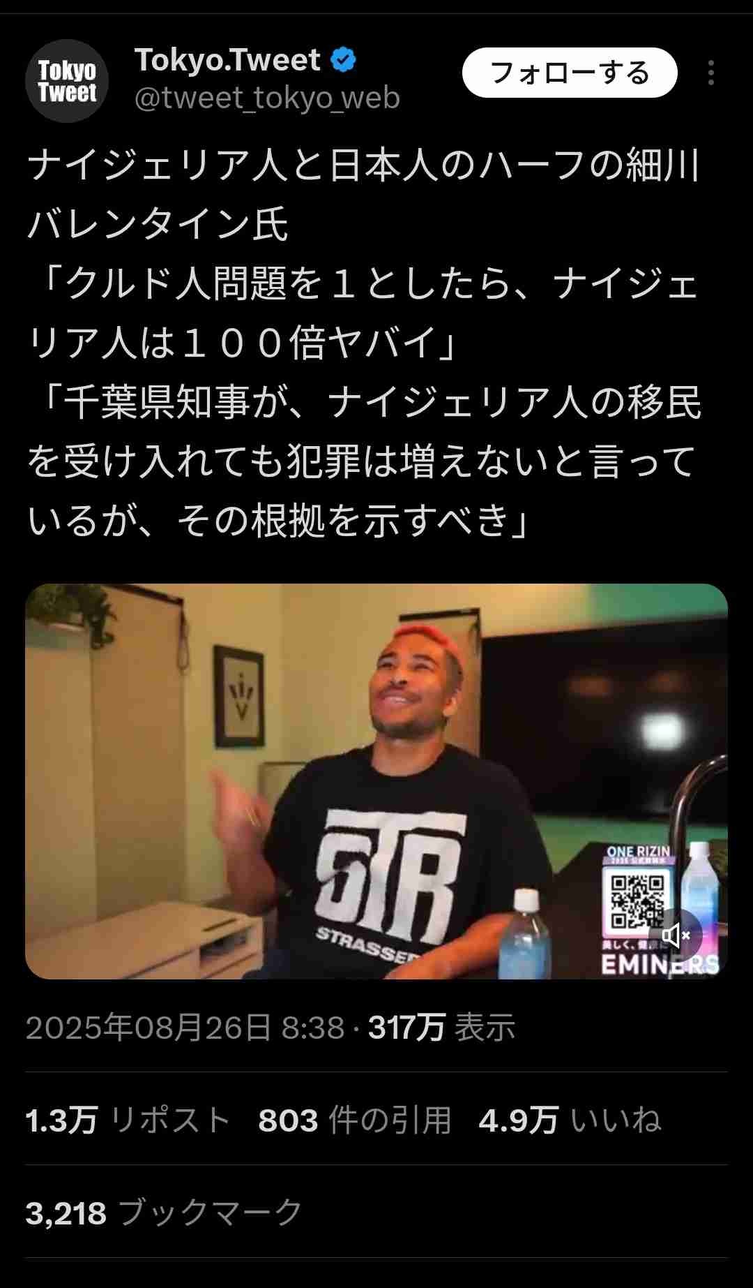 ナイジェリア人ハーフ「クルド人問題を1としたらナイジェリア人はその100倍ヤバい」www