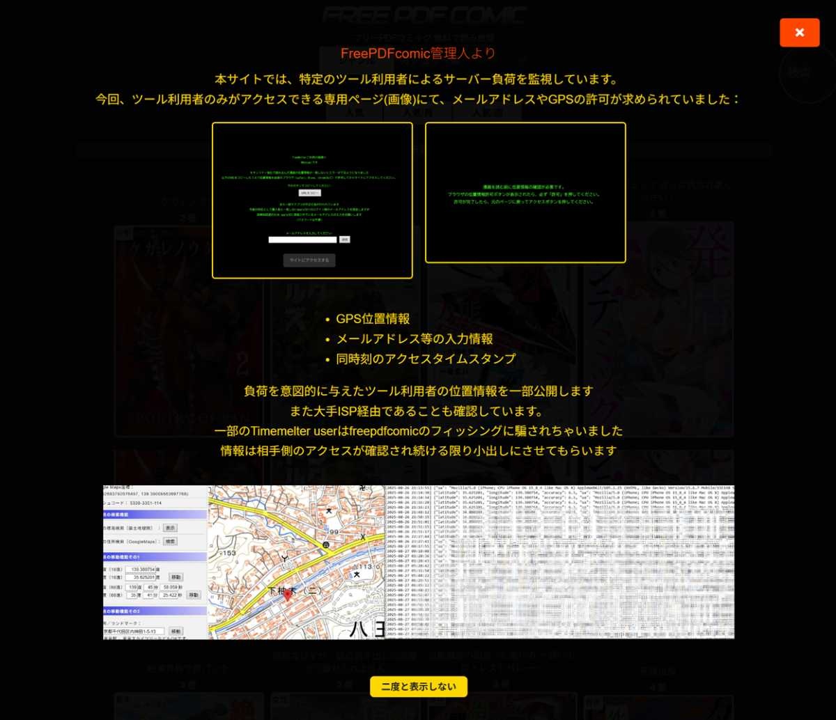 ドメイン変わったばかりの違法漫画サイトにメアドと位置情報許可求められて素直に入力しとるの危機感なさ過ぎて草生えるわ