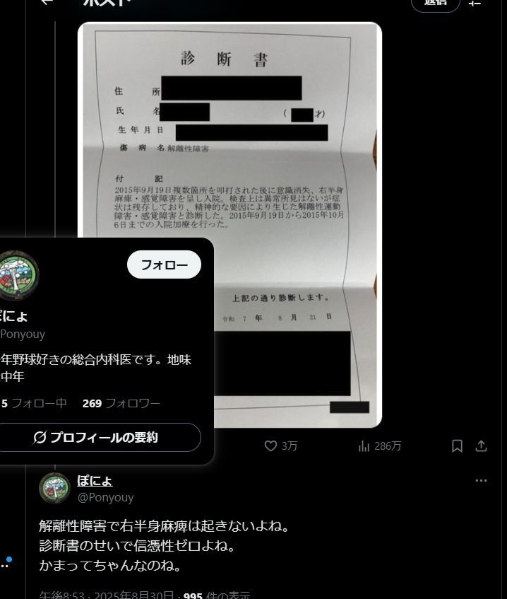 →診断書だしたら検査しても器質的異常はないけど症状はメンタルから来るだと思いますーだったからなんか思ってったのと違うってなったんでしょう