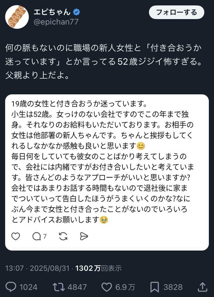 嘘松と言いきれないくらいにはキモいおっさんが蔓延しとる