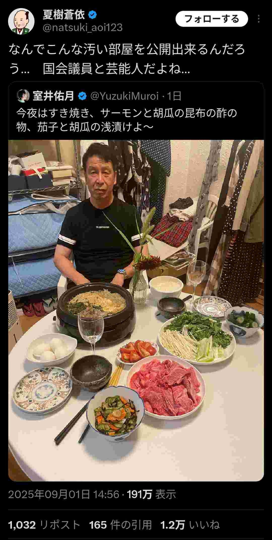インフルエンサー()みたいに全てが作り物の連中は生活感とか一切排除するんだろうけど、国会議員と芸能人なら自然でええやん