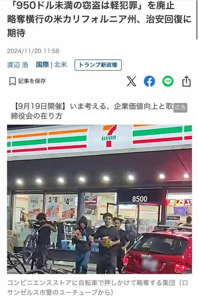 カリフォルニア州 10万円まで万引き無罪やめる(画像あり)www www