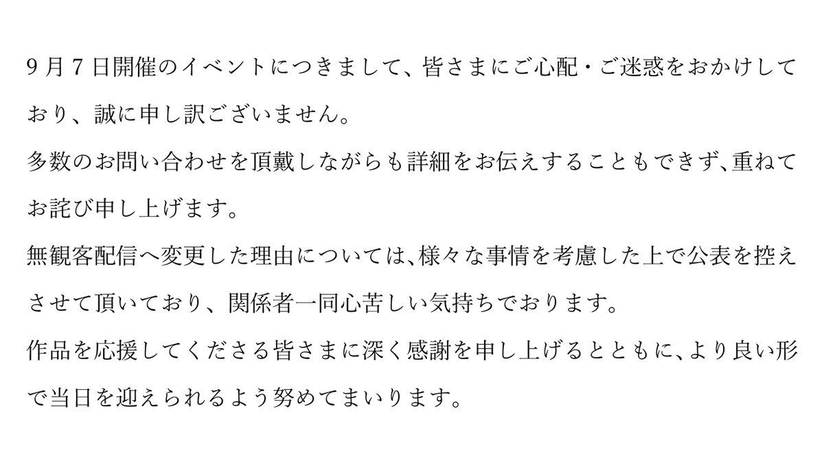 円盤にイベチケつけてたのに無観客配信に切り替えた模様