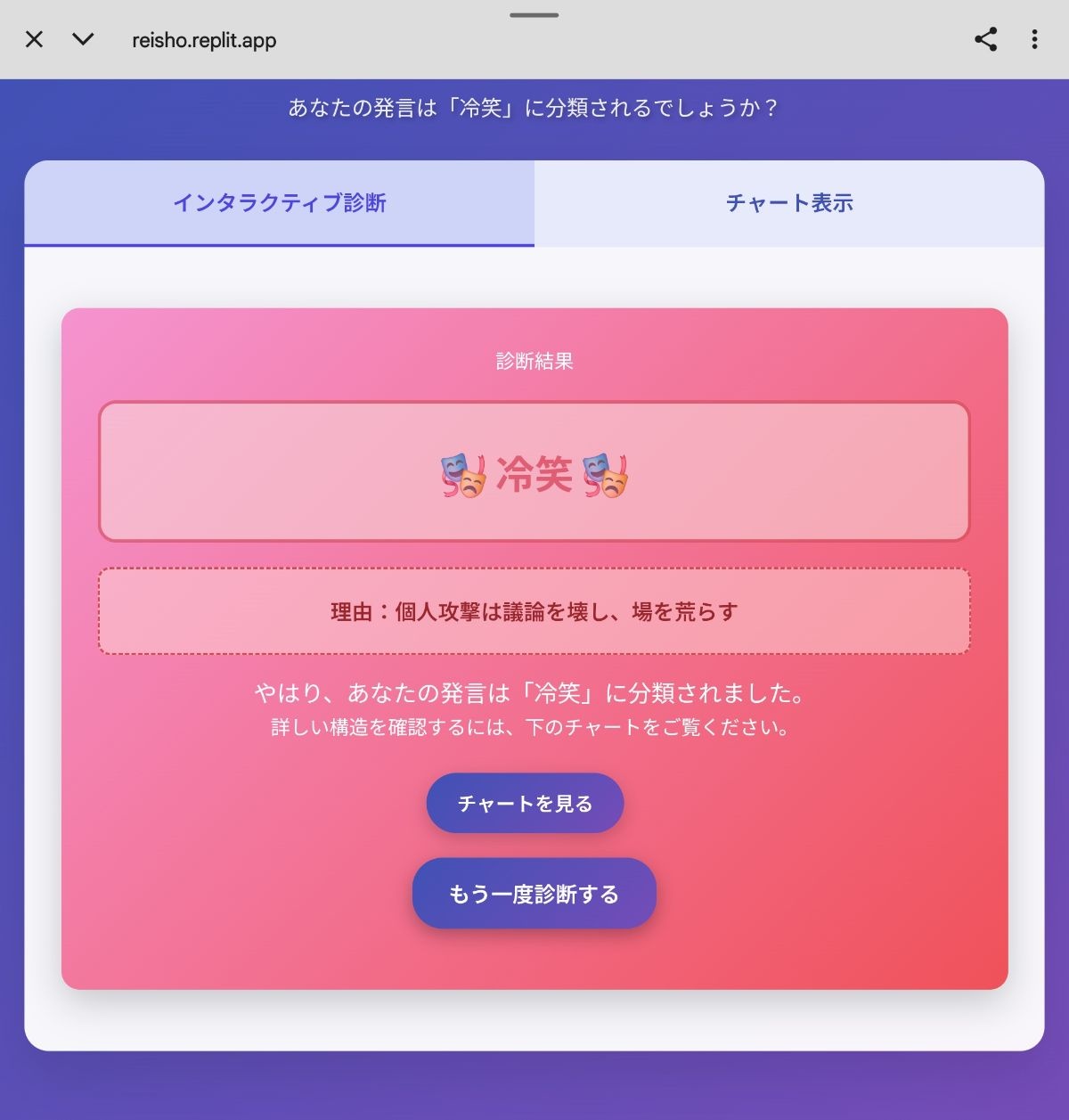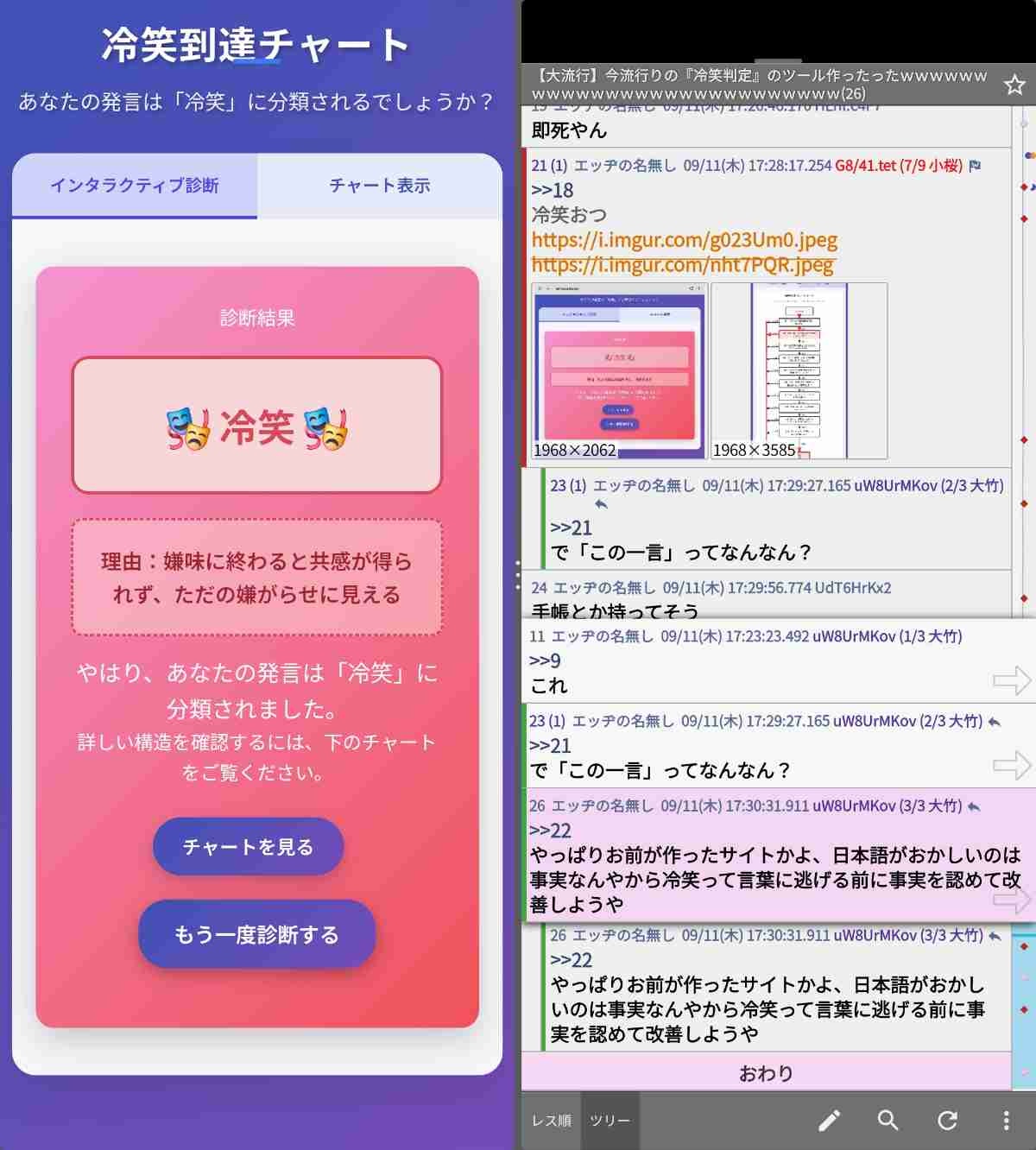 その違いを見分けるツールなのかと思ったら全然そんなことないんやからこんなもの作ってまで冷笑指摘潰したいってどれほど効いてるんやと思っただけや