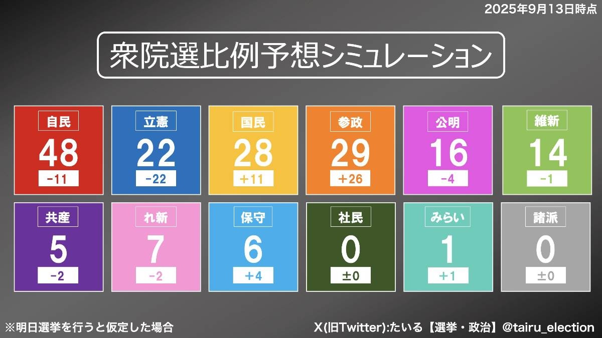 【画像】次の衆院選の予測(最新版)、ガチでマジでヤバイと話題にwww