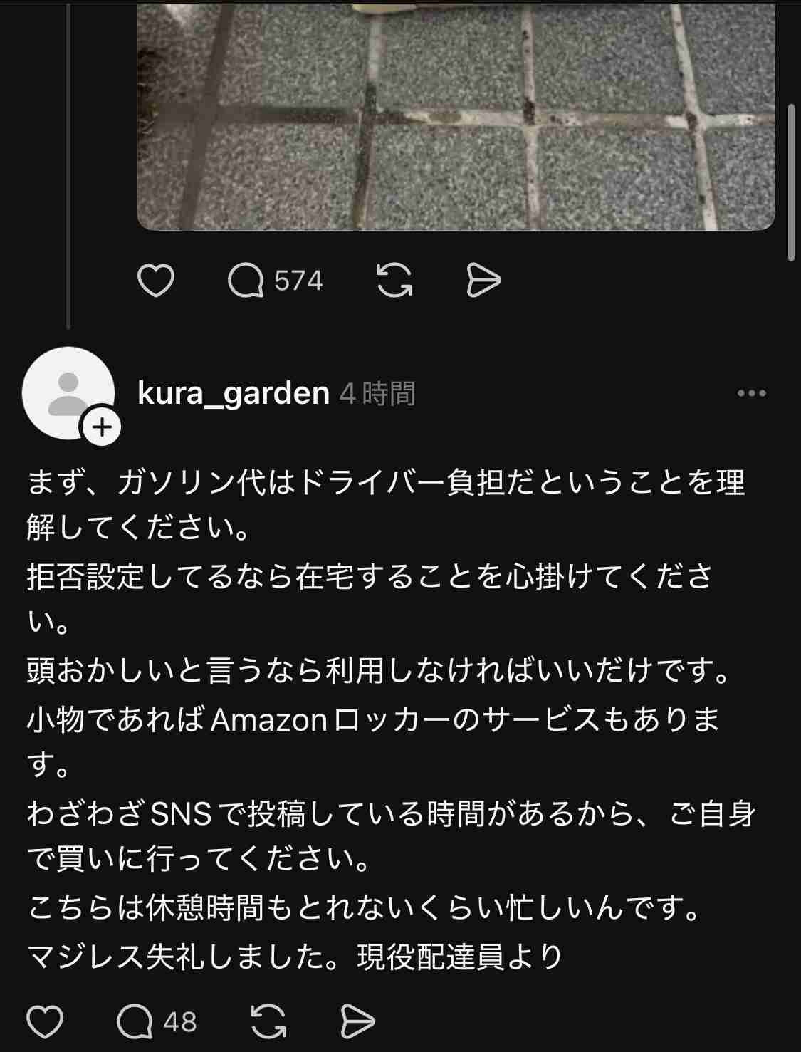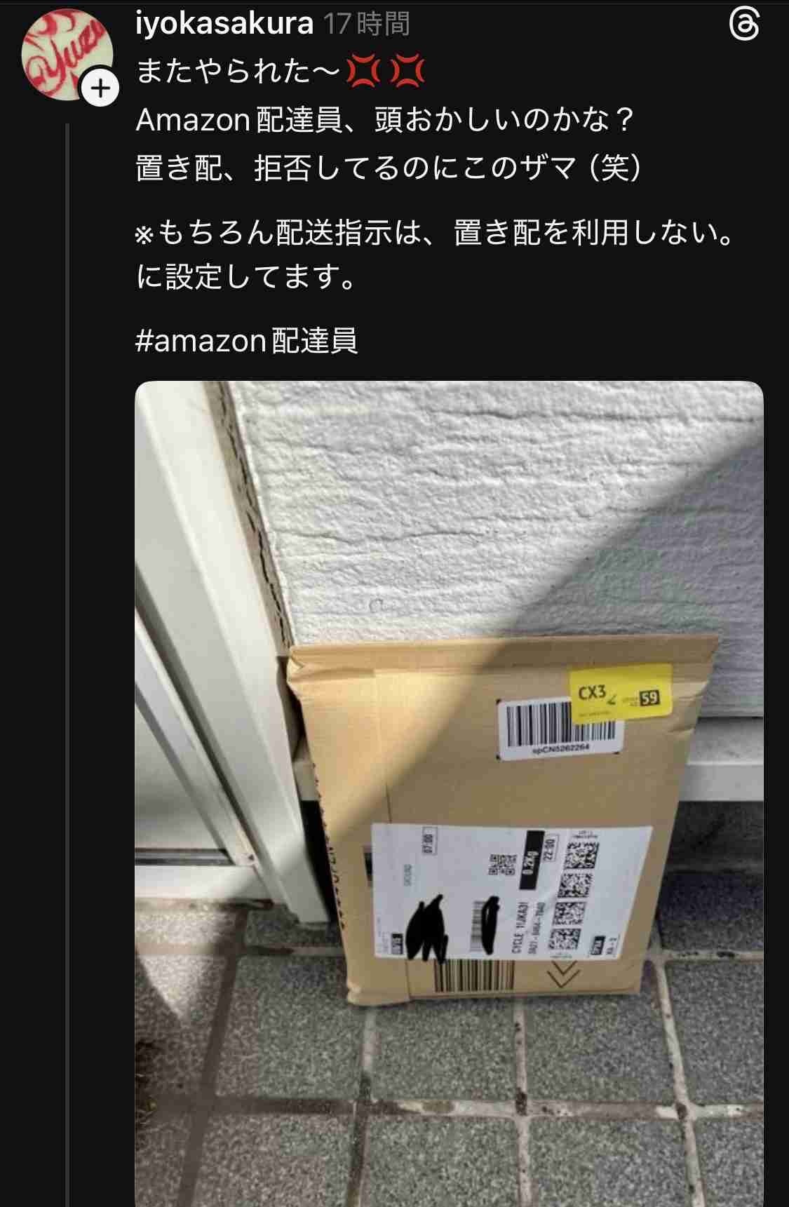 1回置き配になってませんでした?って聞いたらなってますねえとかほざきやがるし