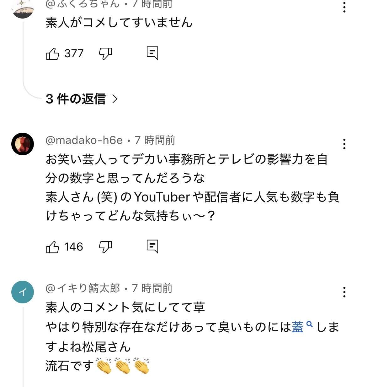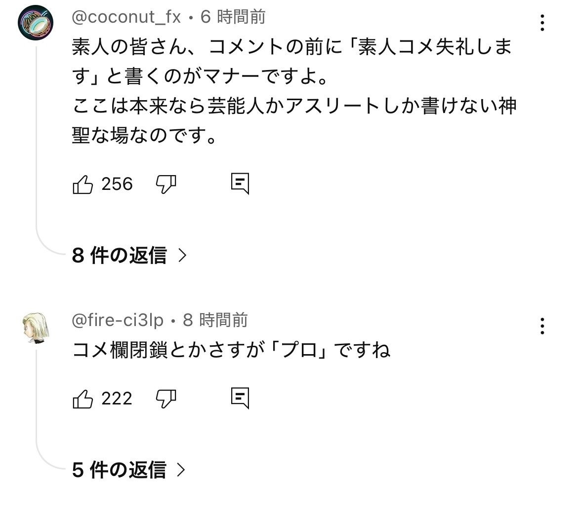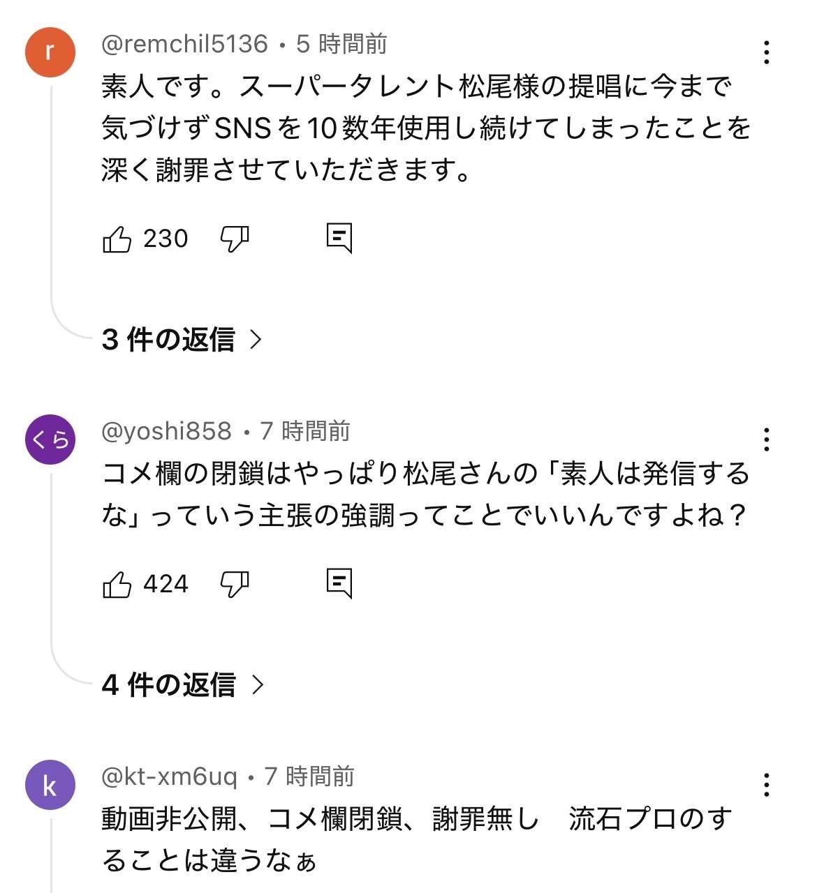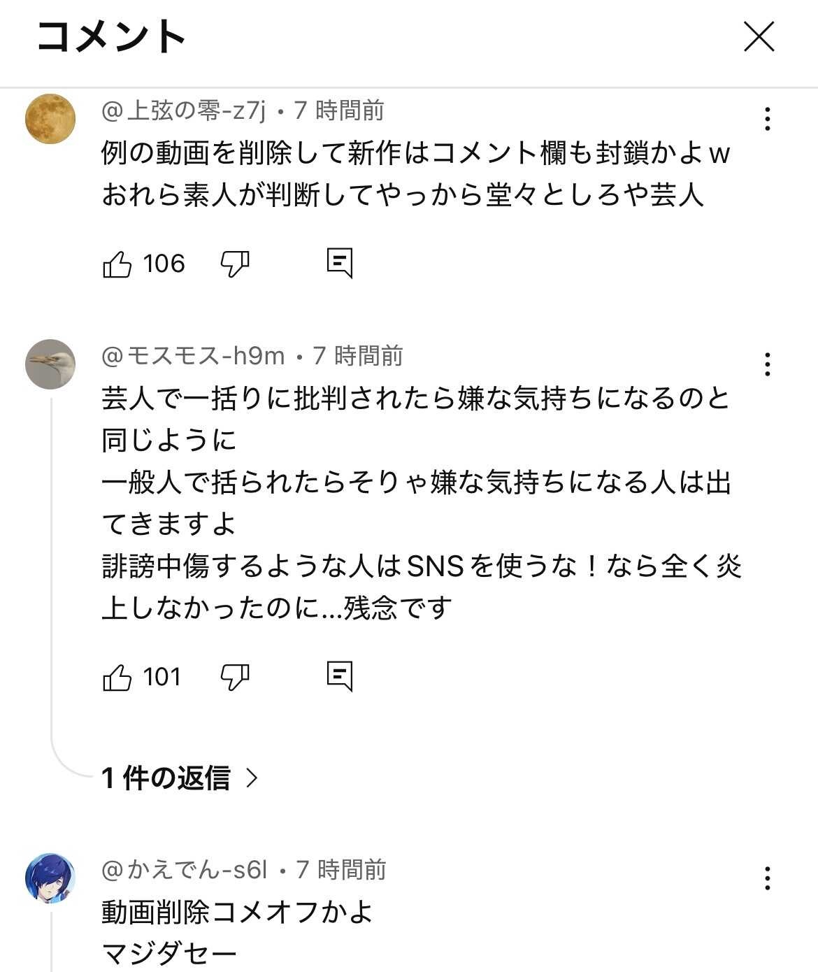 snsには素人はコメントすんなって言ってたけどYouTubeのコメントにも素人はコメントすんなって言われたんか?