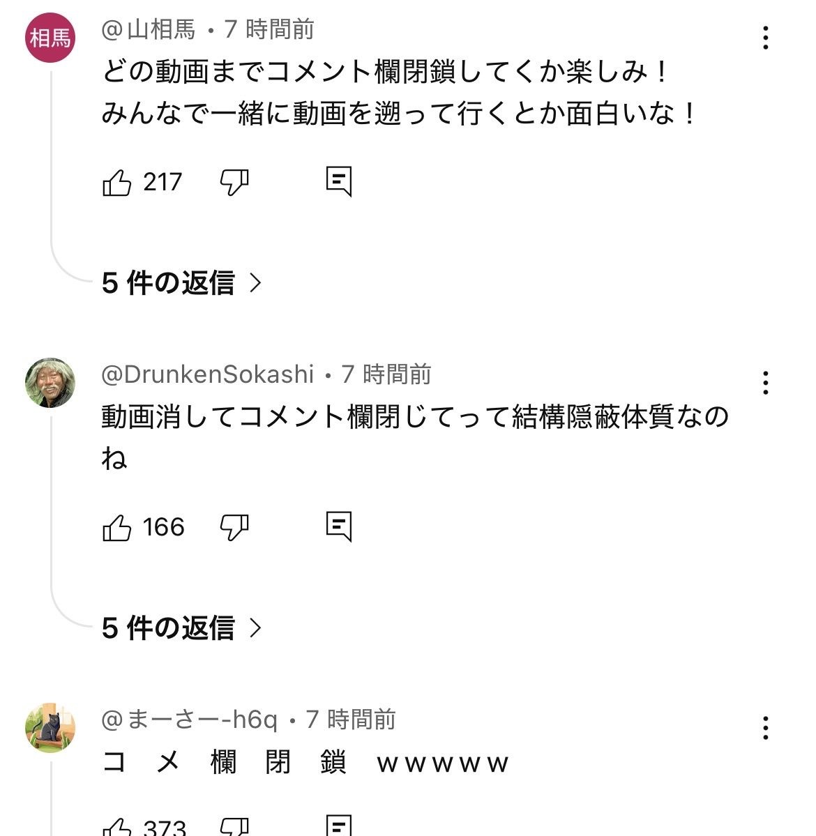 大体こうなるんやからコメ欄閉鎖って意味ないんよな