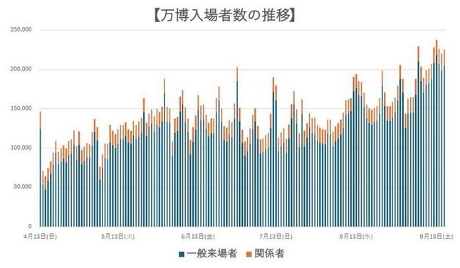 【超人気速報】大阪万博、このままのペースだと2500万人(一般入場者)を超えてしまわれるwwwwwwwww