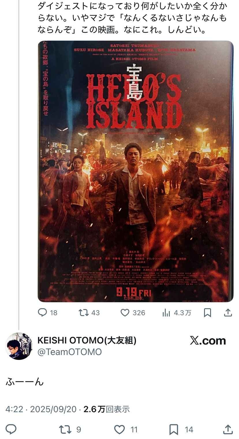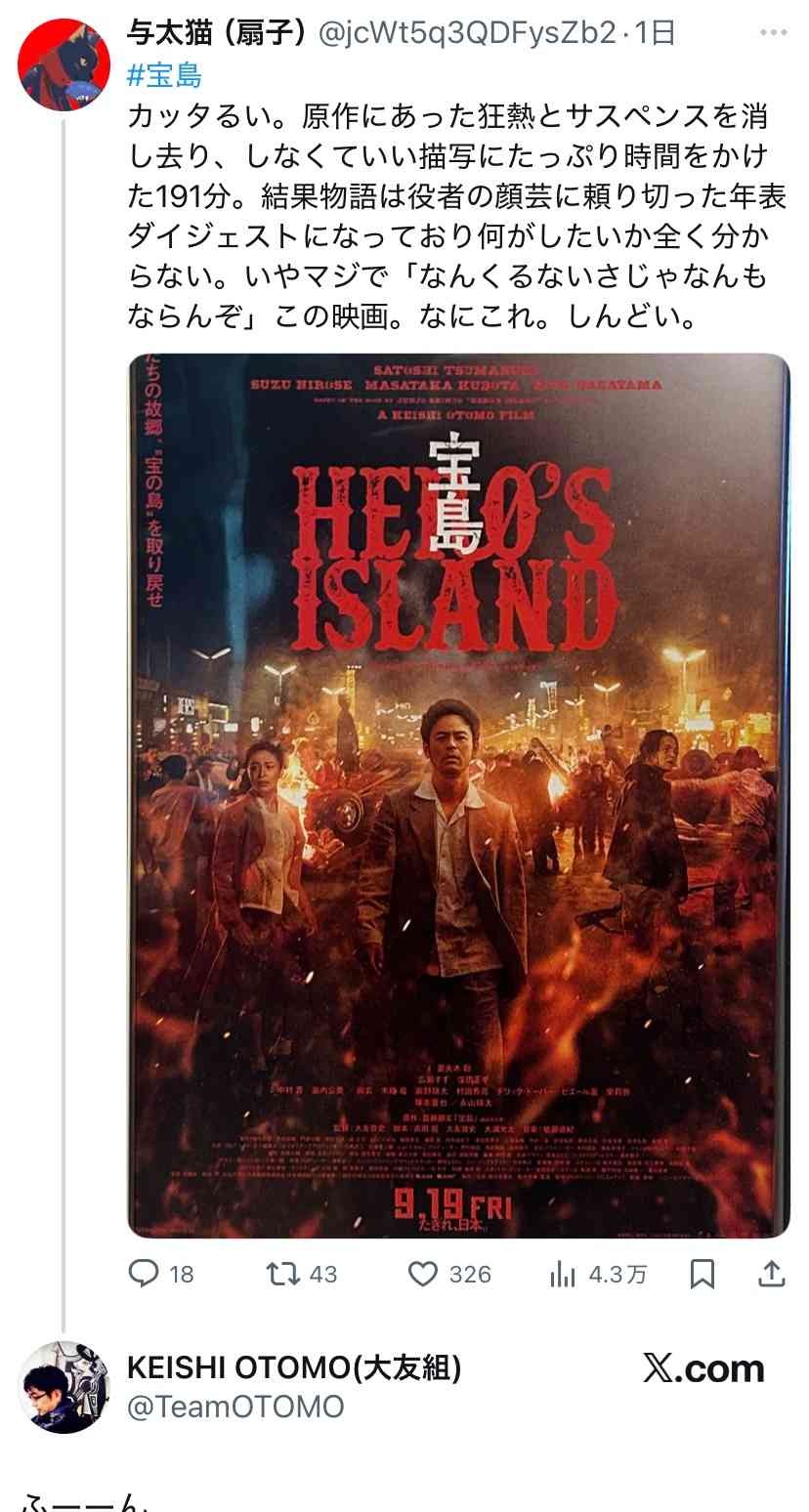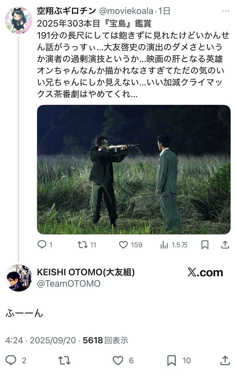 批判にもリプ飛ばすし普通の感想書いたらその場面の意図とかも書いたリプしてくるからなこの監督 別の監督は批判すると謎のリストに加えてくるし、映画監督ってエゴサ好きなんやな
