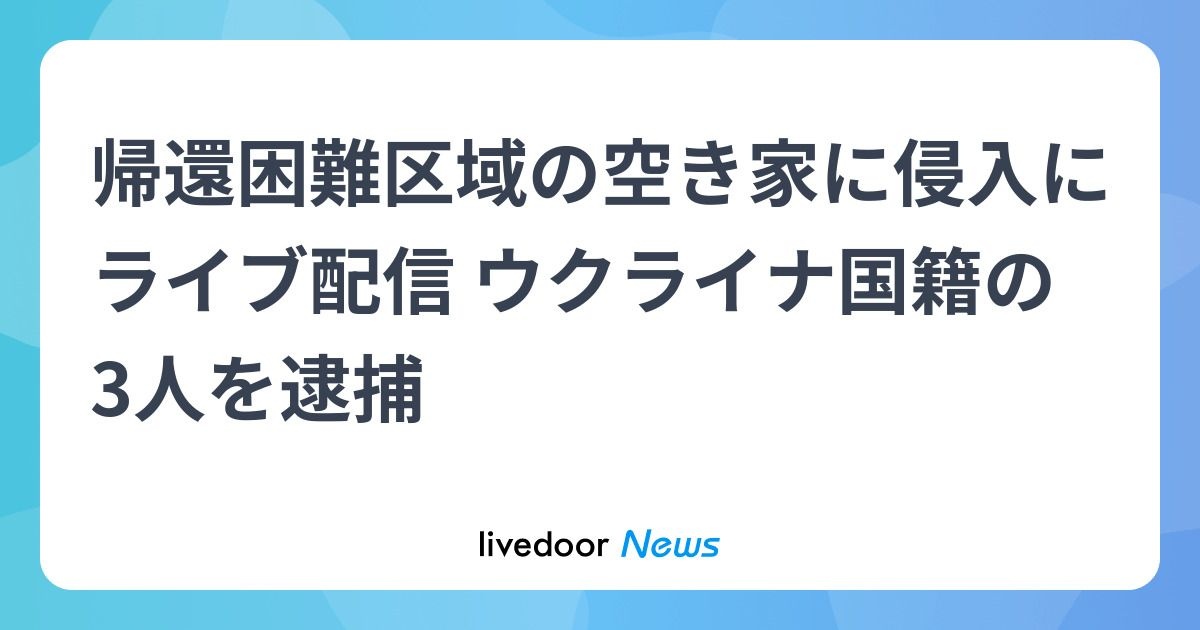 【通報】帰還困難区域の家に侵入しYouTubeで配信か、ウクライナ国籍の男ら3人を逮捕 福島