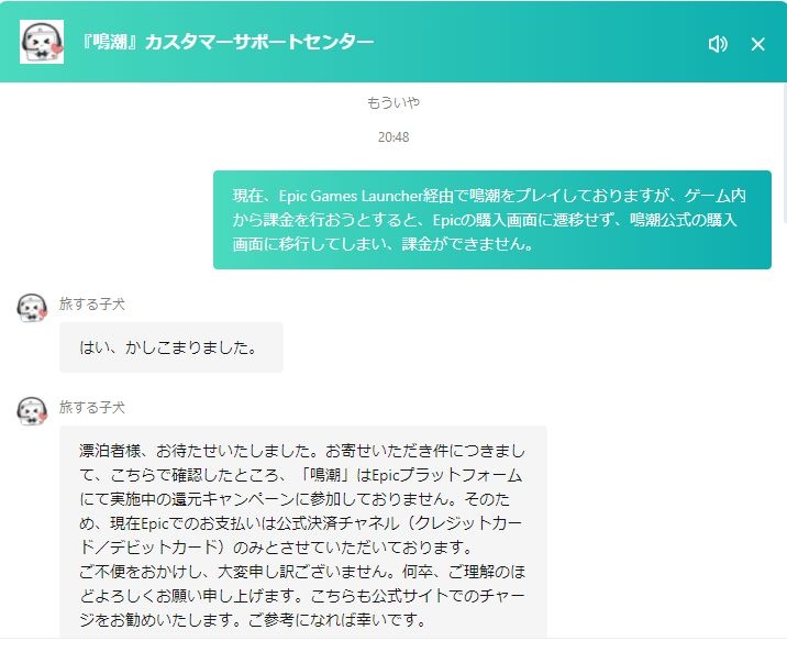 鳴潮がEPIC経由で課金できないのは仕様とのこと