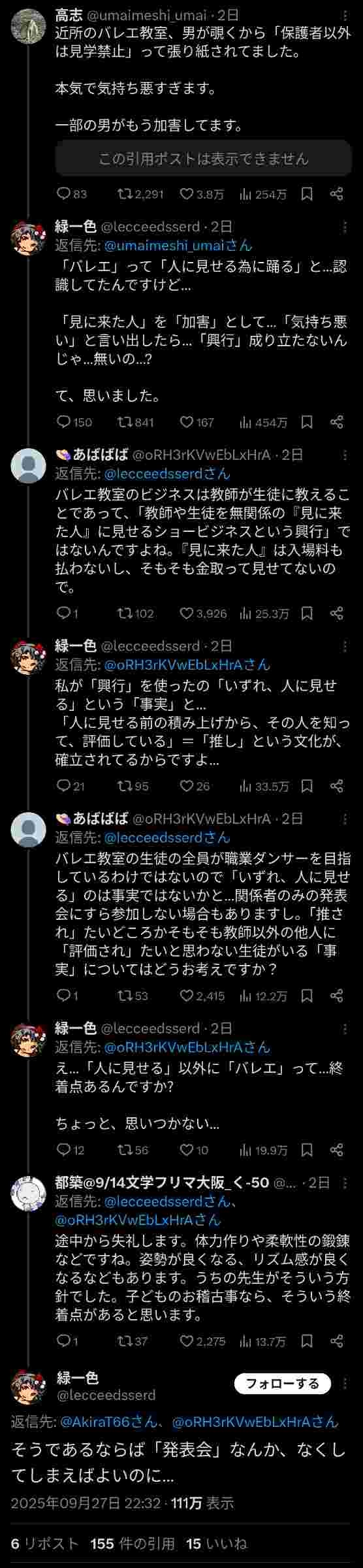 男が覗くからって冠詞もアレだし外部向けコンクールでもないバレエ教室わざわざ見に行く部外者ってただのやべーやつじゃないの