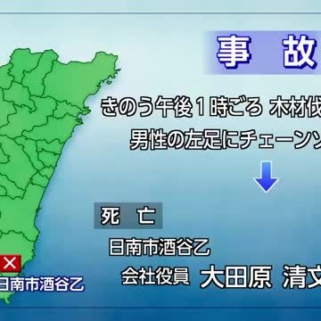 木材伐採中にチェーンソーが足に当たり日南市の男性死亡