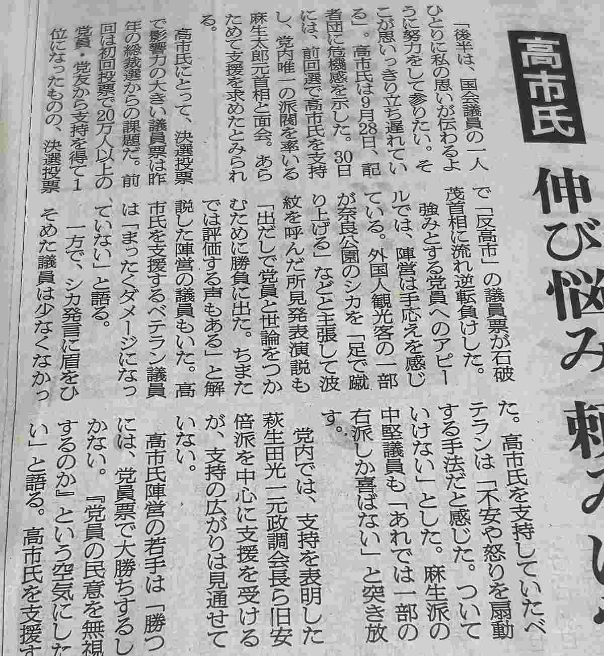 【総裁選】高市早苗さん、鹿騒動の追い風に乗り議員票絶好調www