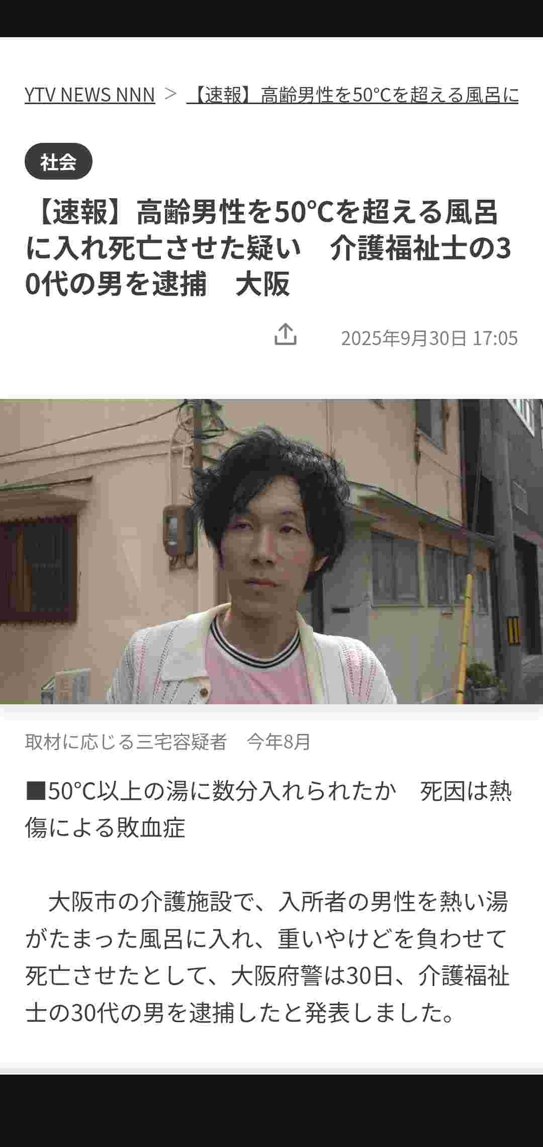 男性は50℃以上のお湯に数分間、浸かっていたとみられ、全身の約77%にやけどを負い、約3週間後に死亡しました