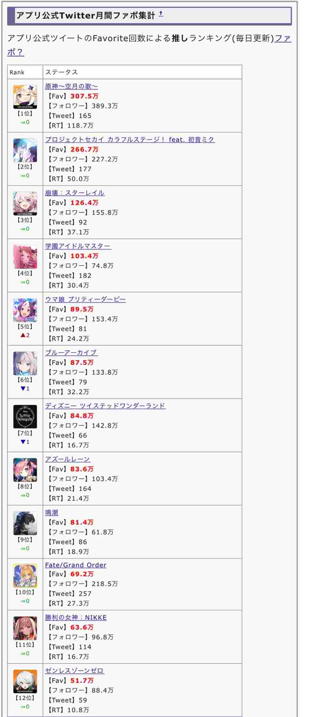 9月のソシャゲSNS人気ランキング 1位原神2位プロセカ3位スタレ4位学マス5位ウマ娘6位ブルアカ8位アズレン9位鳴潮10位FGO