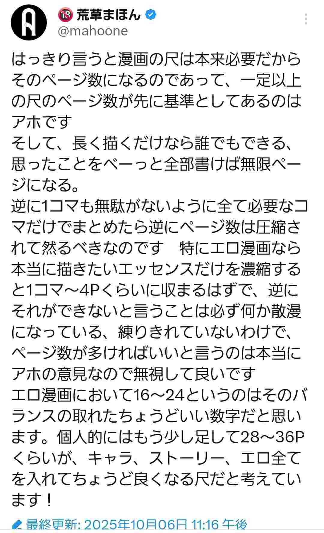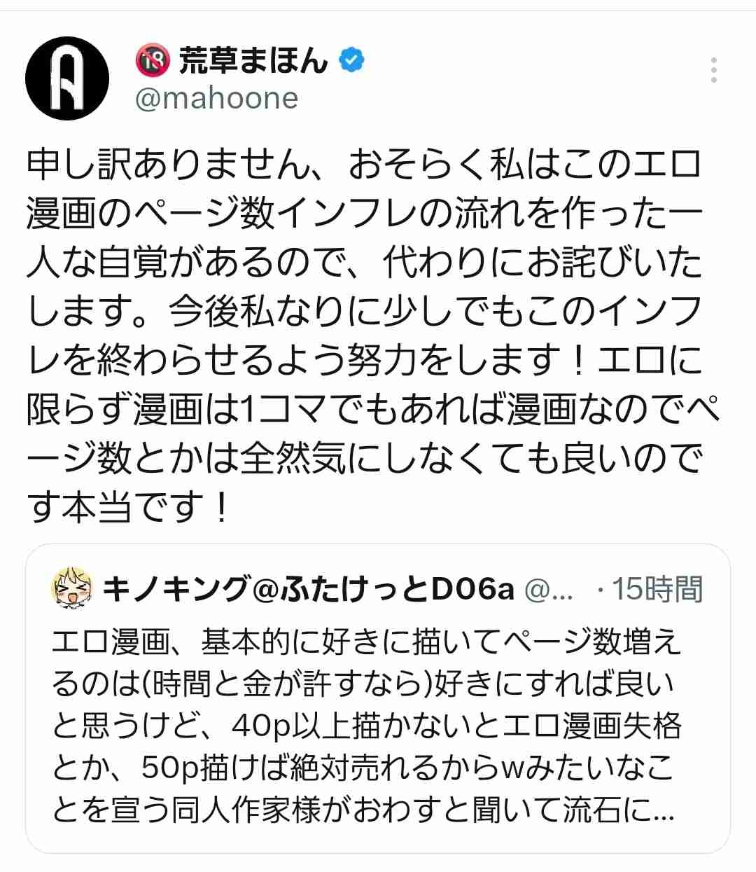 ワイ自身エ口漫画描くかと思ってファンザの売上ランキングとか見てる時に、この人はじめトップクラスの人たちみんなページ数多いな思ったからこの人の言い分に同意しただけや