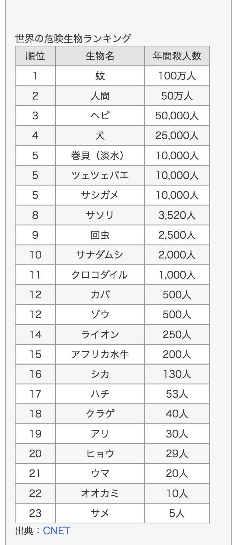 なぜかこの統計には入ってないけど個人的にデータ調べてみたら15位あたりに食い込むくらいには殺してる