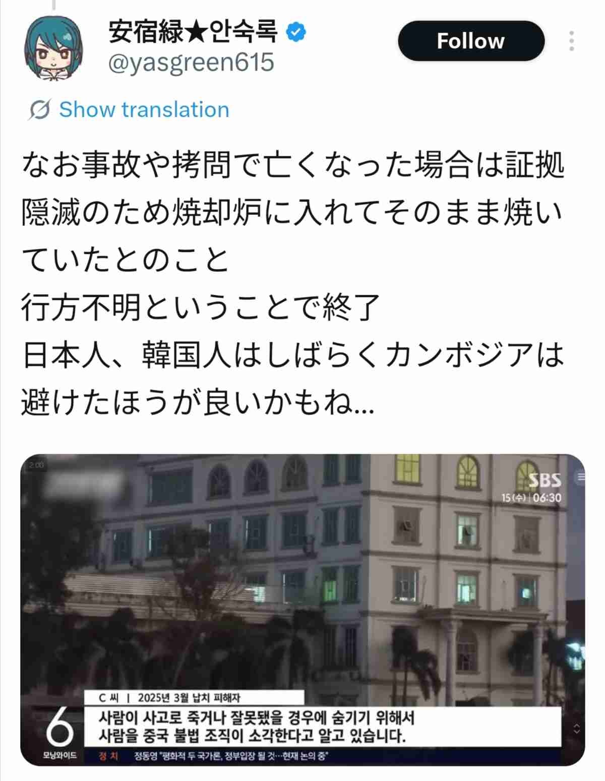 22歳大学生遺体で発見「博覧会に行く」出発1週間後家族に脅迫電話…死因「拷問などによる心臓まひ」 カンボジアで韓国人約80人行方不明