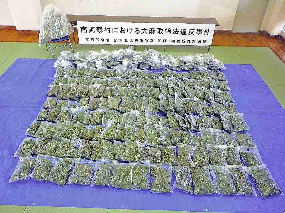 熊本県警は11日、同県南阿蘇村、自称焼き芋販売業の男(53)を大麻取締法違反(営利目的所持)容疑で現行犯逮捕、同法違反(同栽培)容疑で逮捕したと発表した。押収した乾燥大麻は計約50キロ、末端価格約2億5000万円相当に上り、県内では記録のある2015年以降で最高量と額になるという。