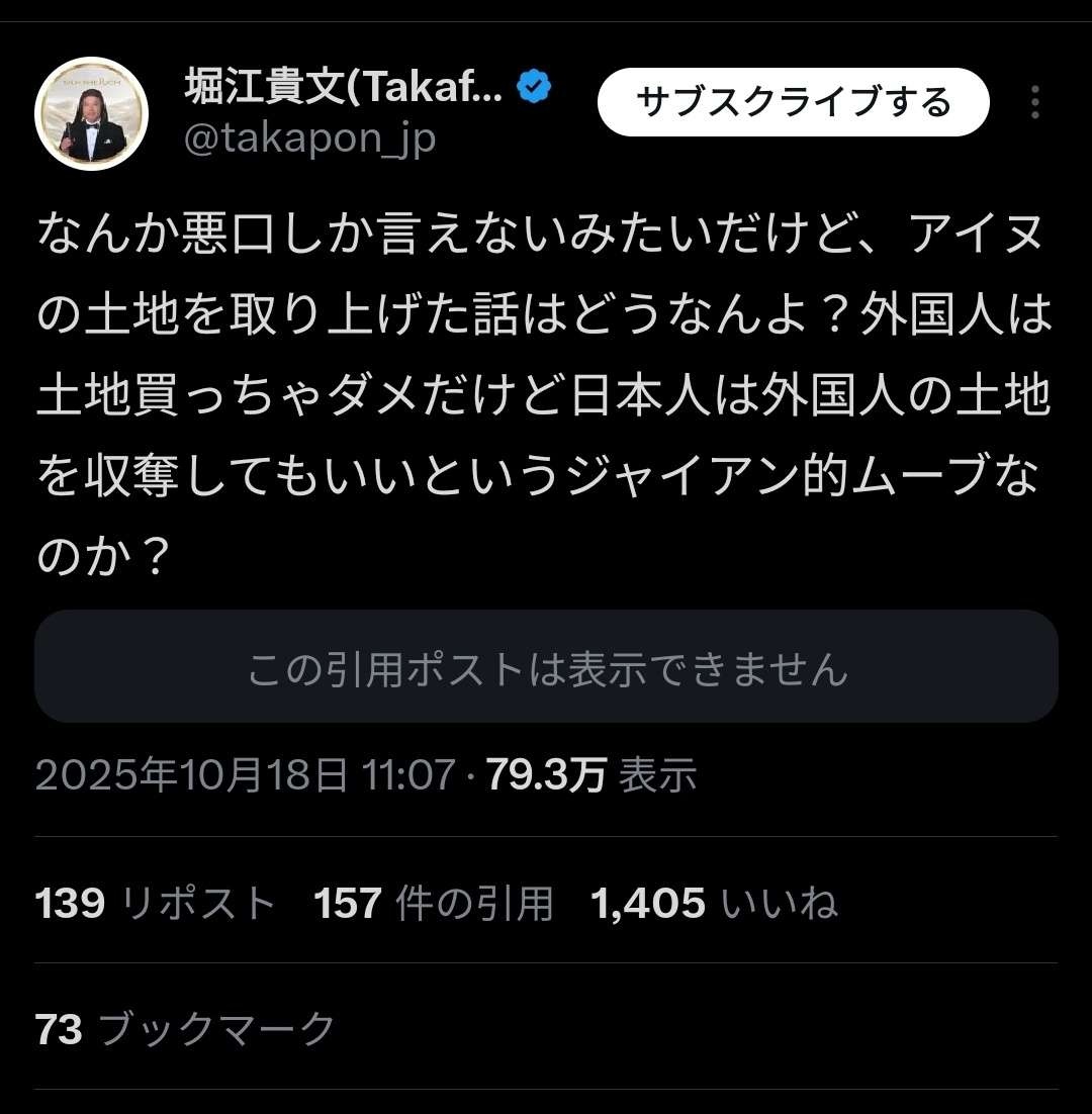 良し悪しはともかく今のネトウヨ界隈は話どころか文字すら通じないのにレスバ仕掛ける堀江は凄いなと思う