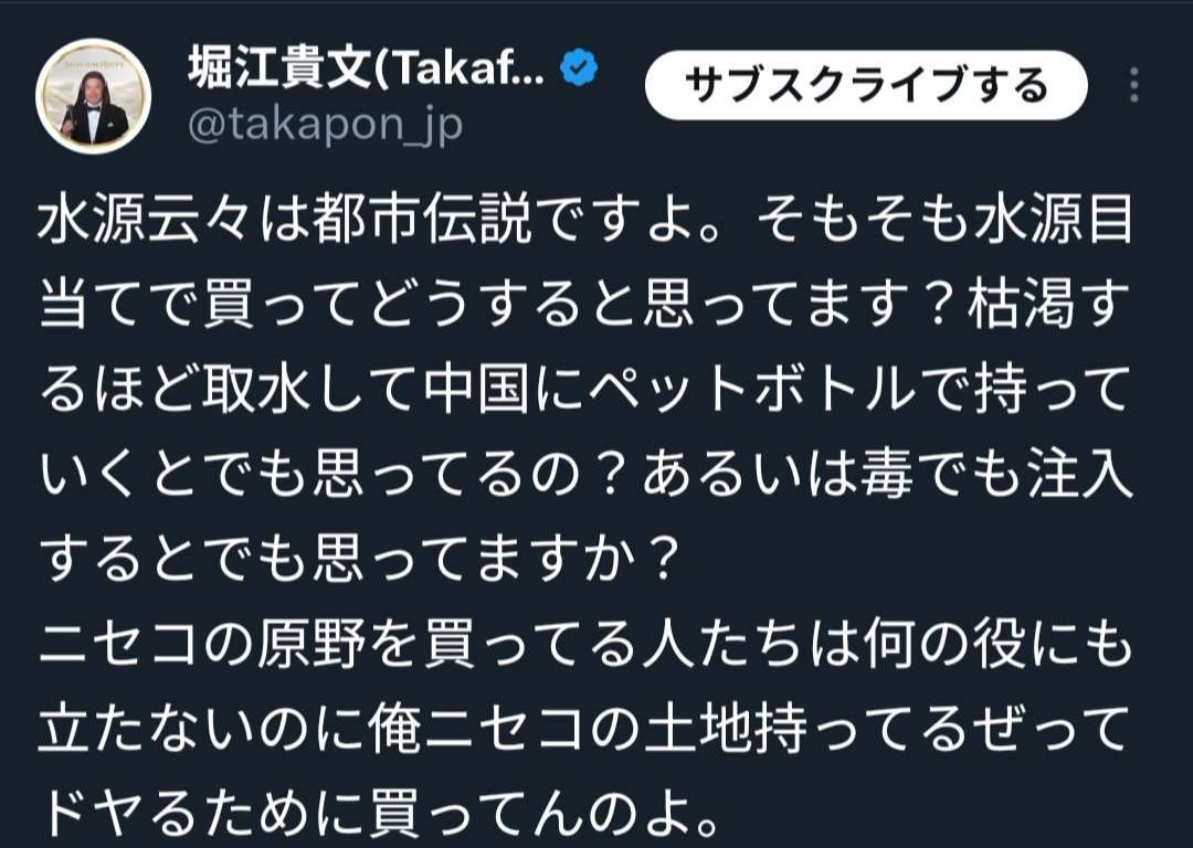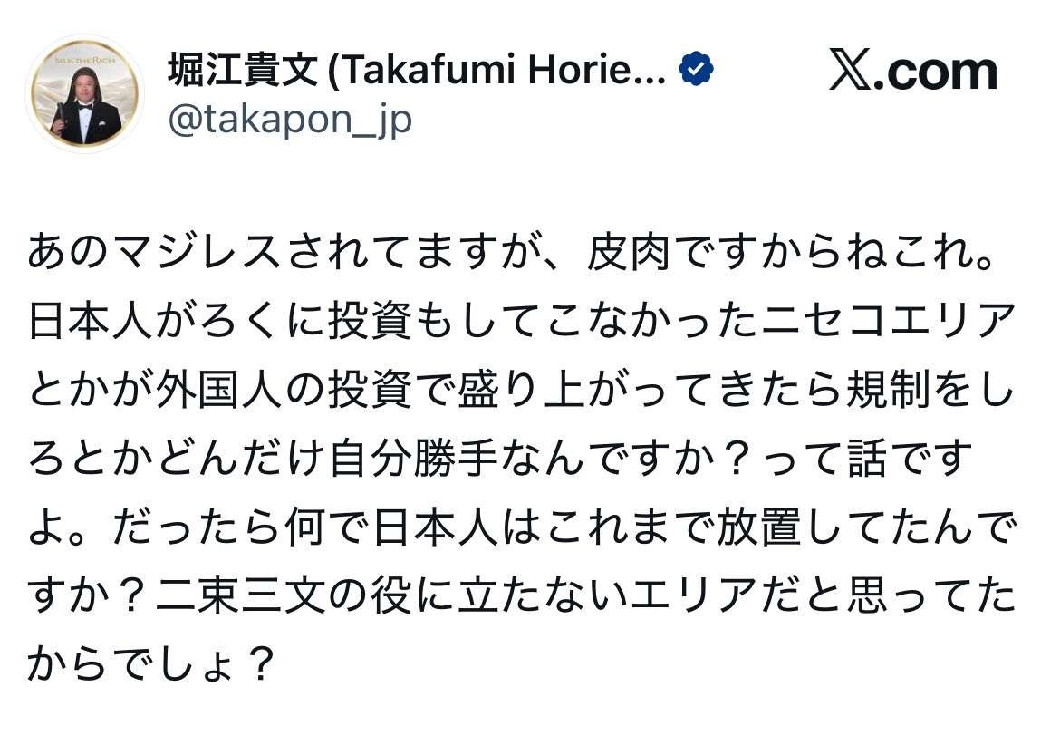 ネトウヨが「外国人がニセコ土地を買ってる!規制しろ!」と言った中での発言や