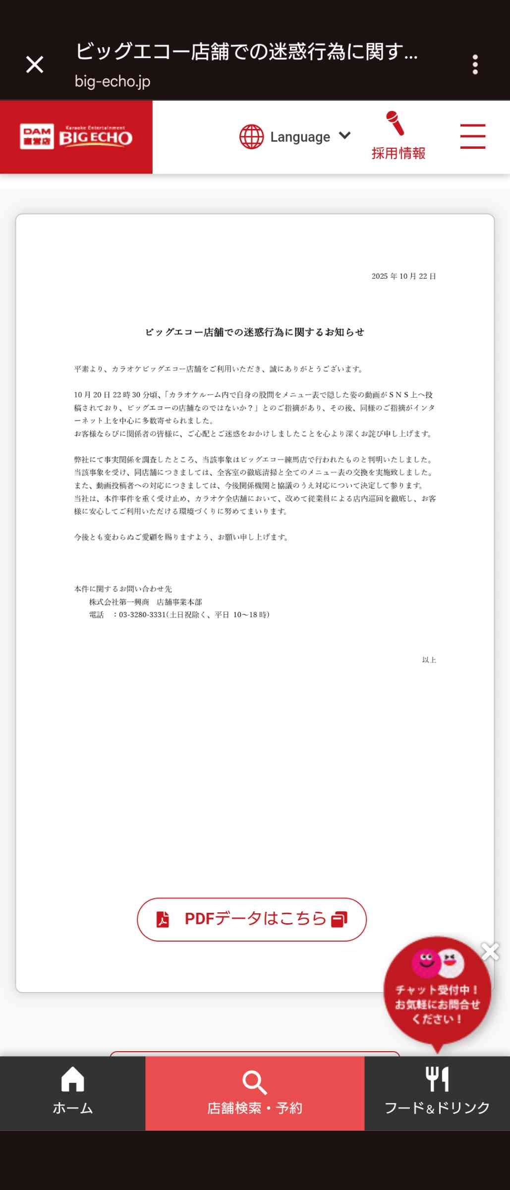 本件を重く受け止め全店舗において〜って書いてあるから損害が結構行くんじゃないか