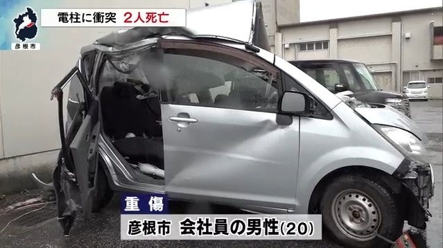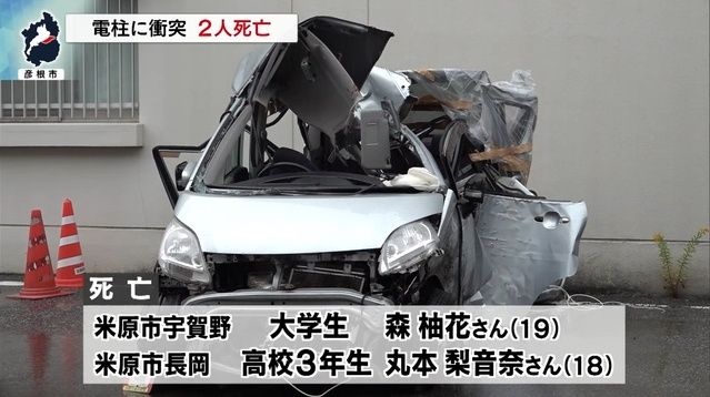 対向車線にはみ出して電柱に激突で後ろ崩壊