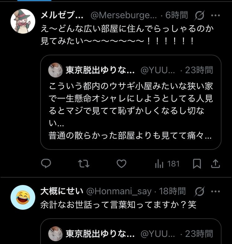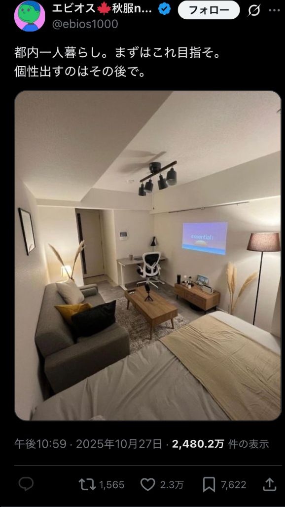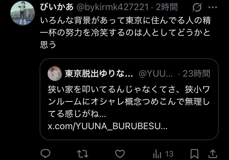 【画像】X女子「東京の狭いウサギ小屋で部屋をオシャレにしてる人、痛々しい」→都民ブチギレ大発狂www