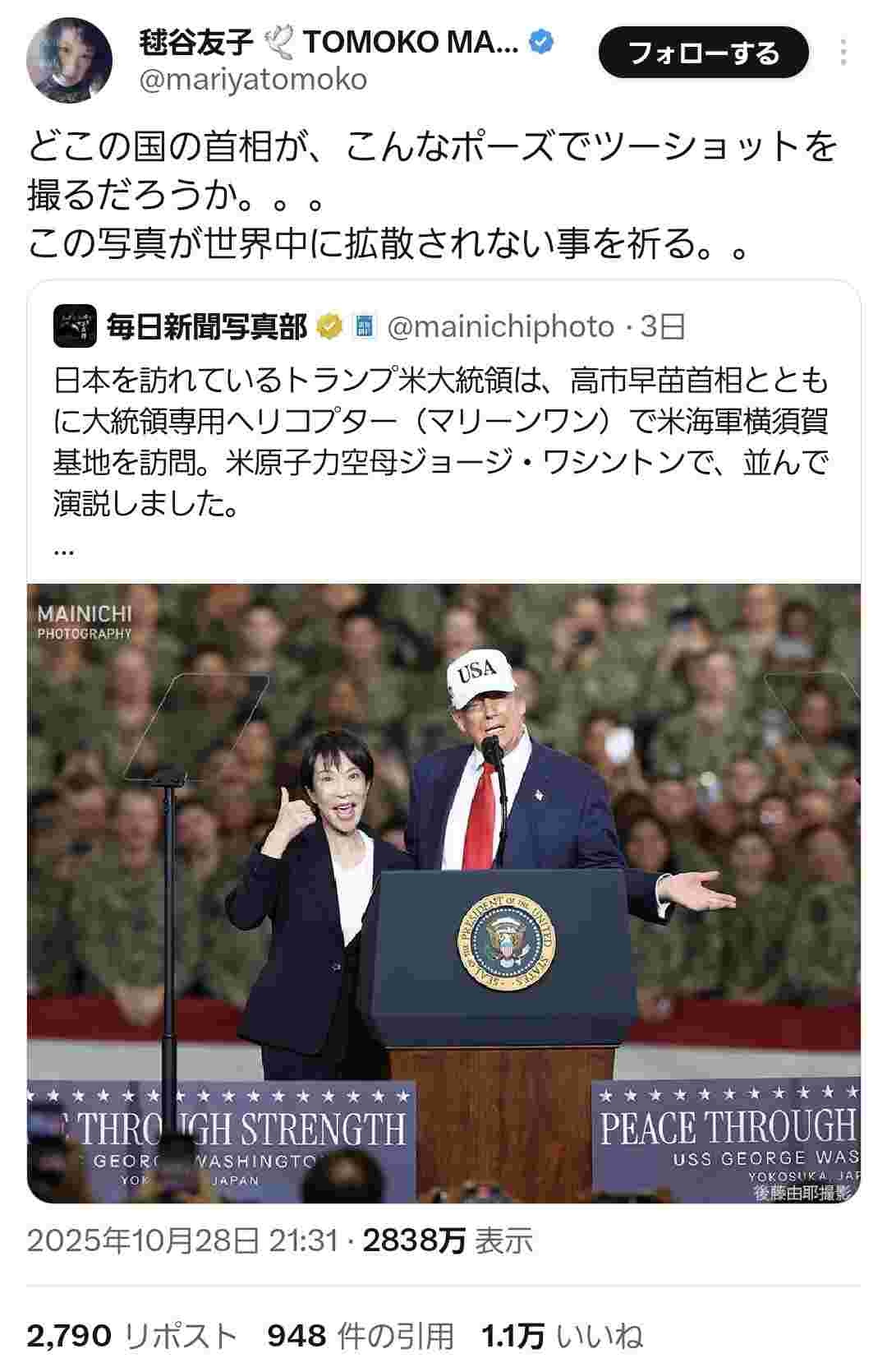 総理官邸とかじゃなくアメリカの領域でこのポーズなのは高市らしい