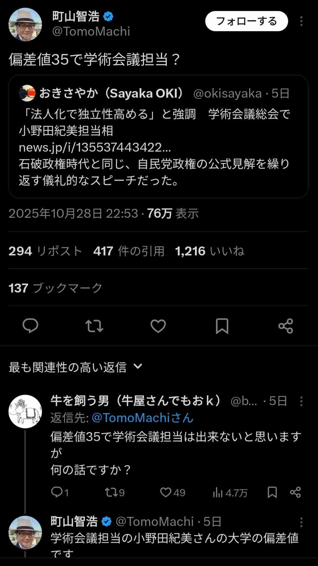 偏差値35の大臣が学術会議担当になってるのを馬鹿にしてる模様